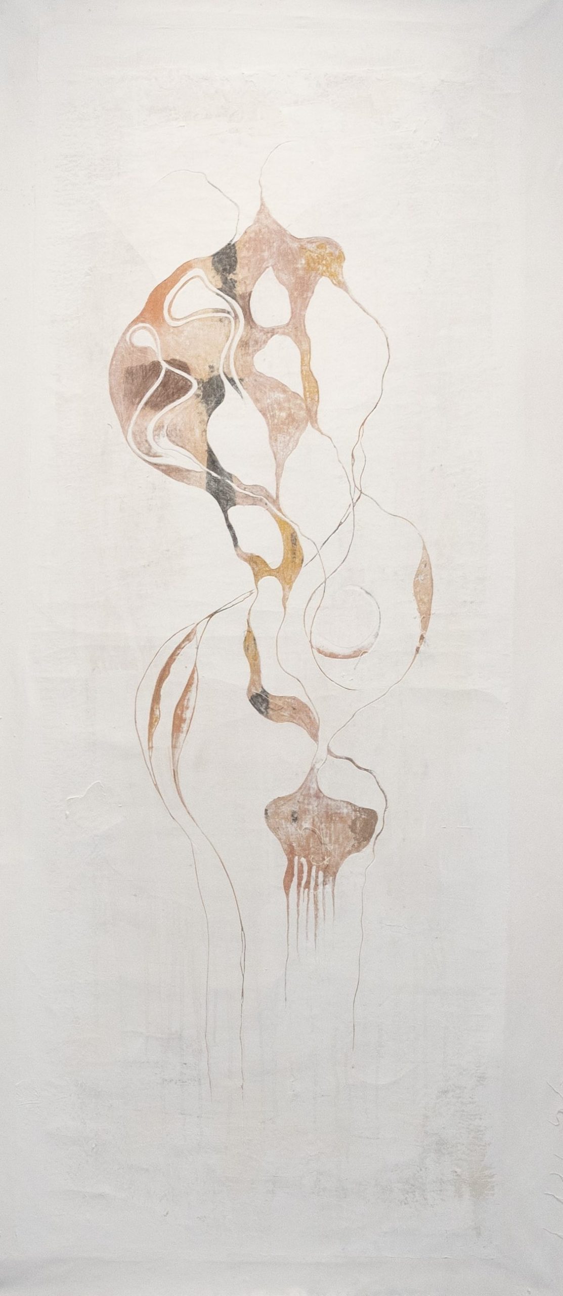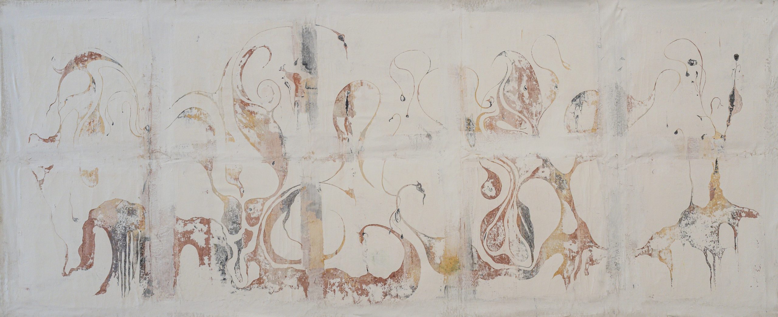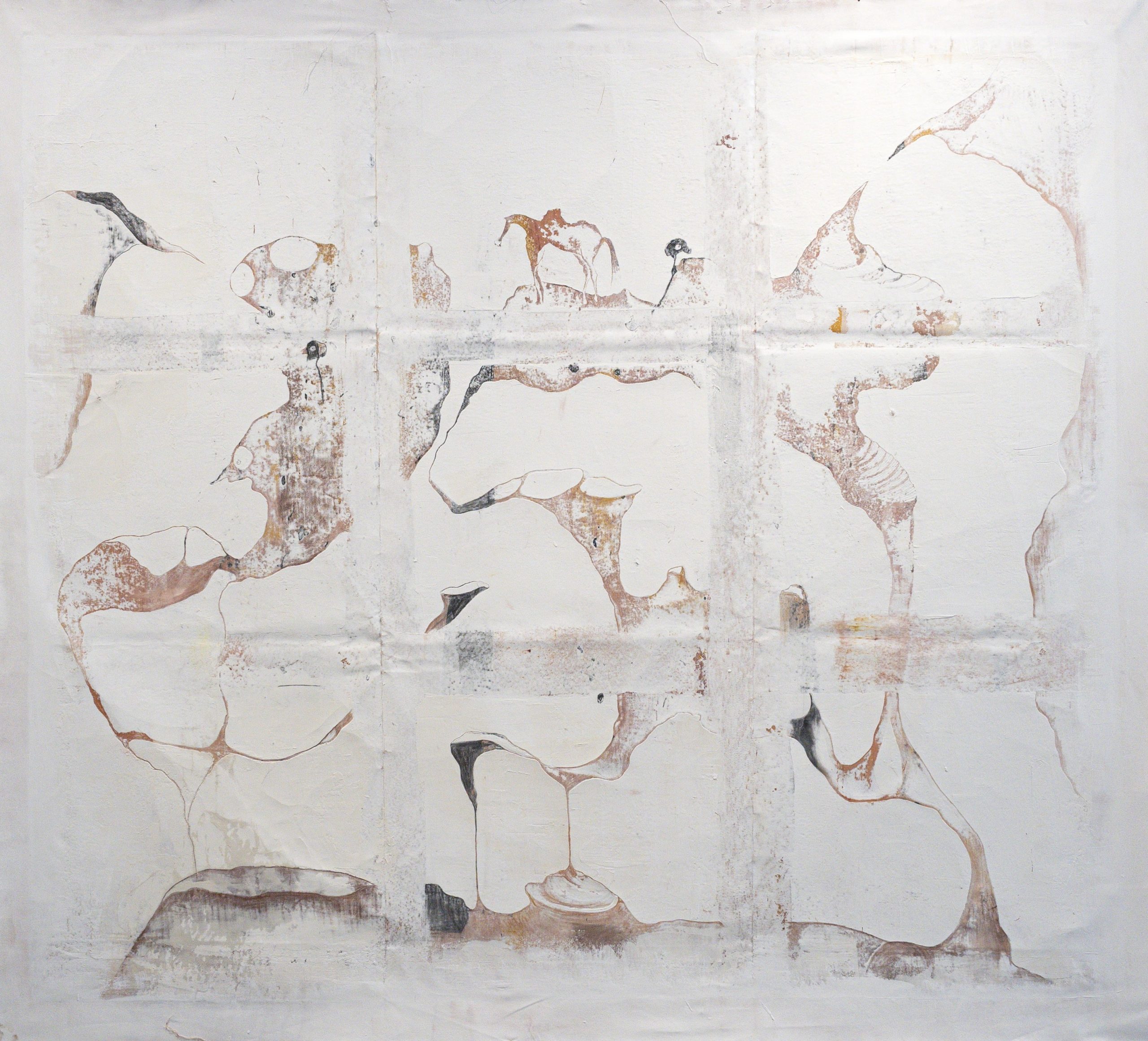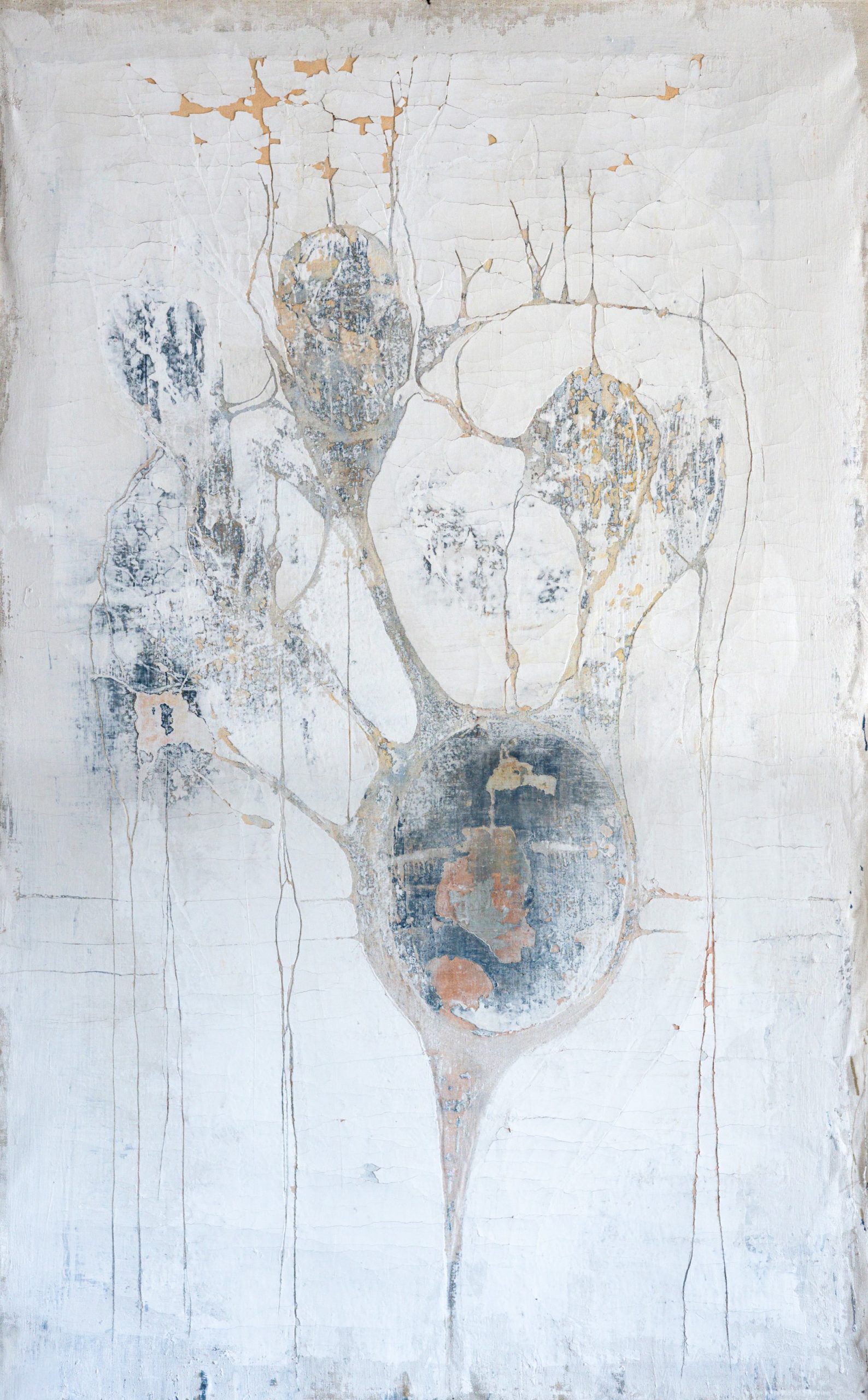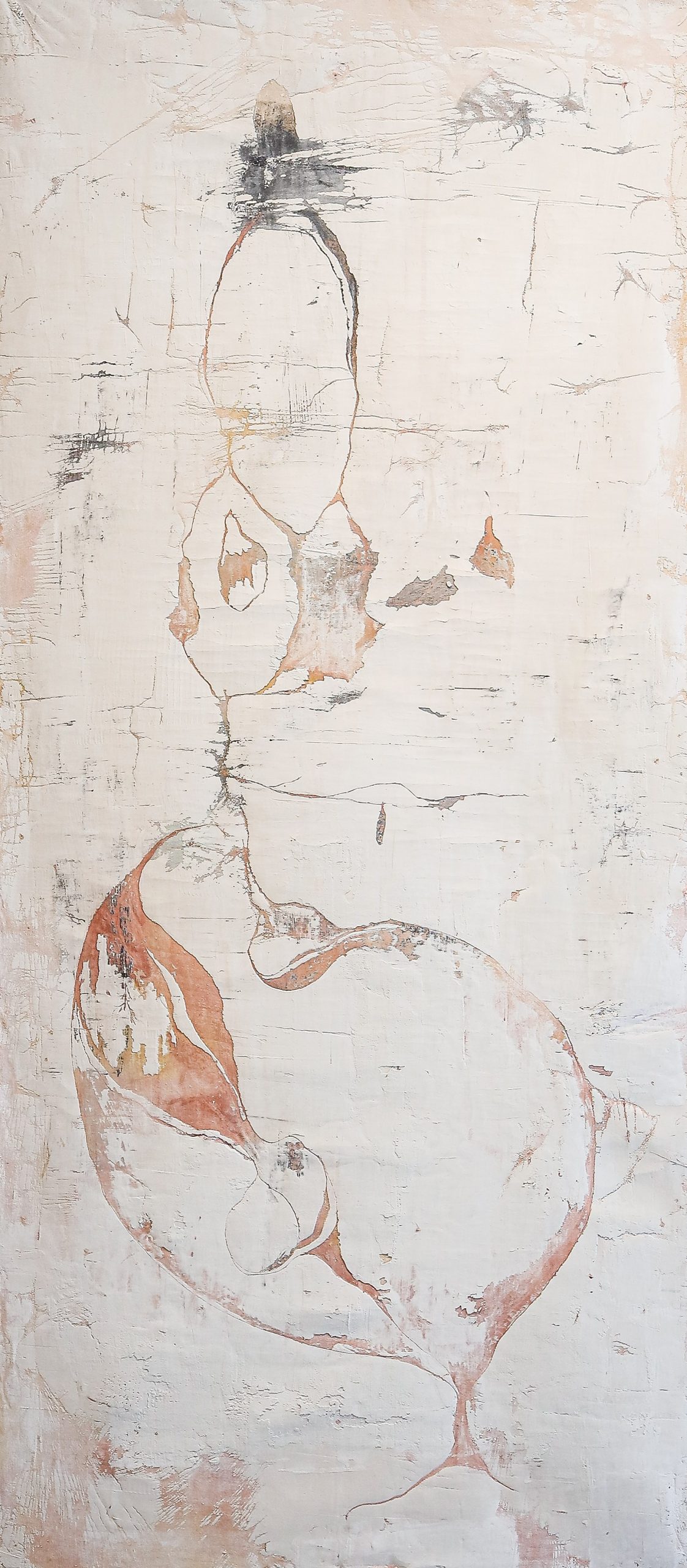 Over the years, Tolkovsky has developed a distinctive technique based on the classical method of sgraffito. Through processes of scratching, carving, and revealing layered paint and plaster, she creates images in which the surface itself becomes a carrier of memory. Her painting practice simultaneously embodies construction and erosion, revelation and concealment, opening a window into the movements of time, memory, and unfolding history.