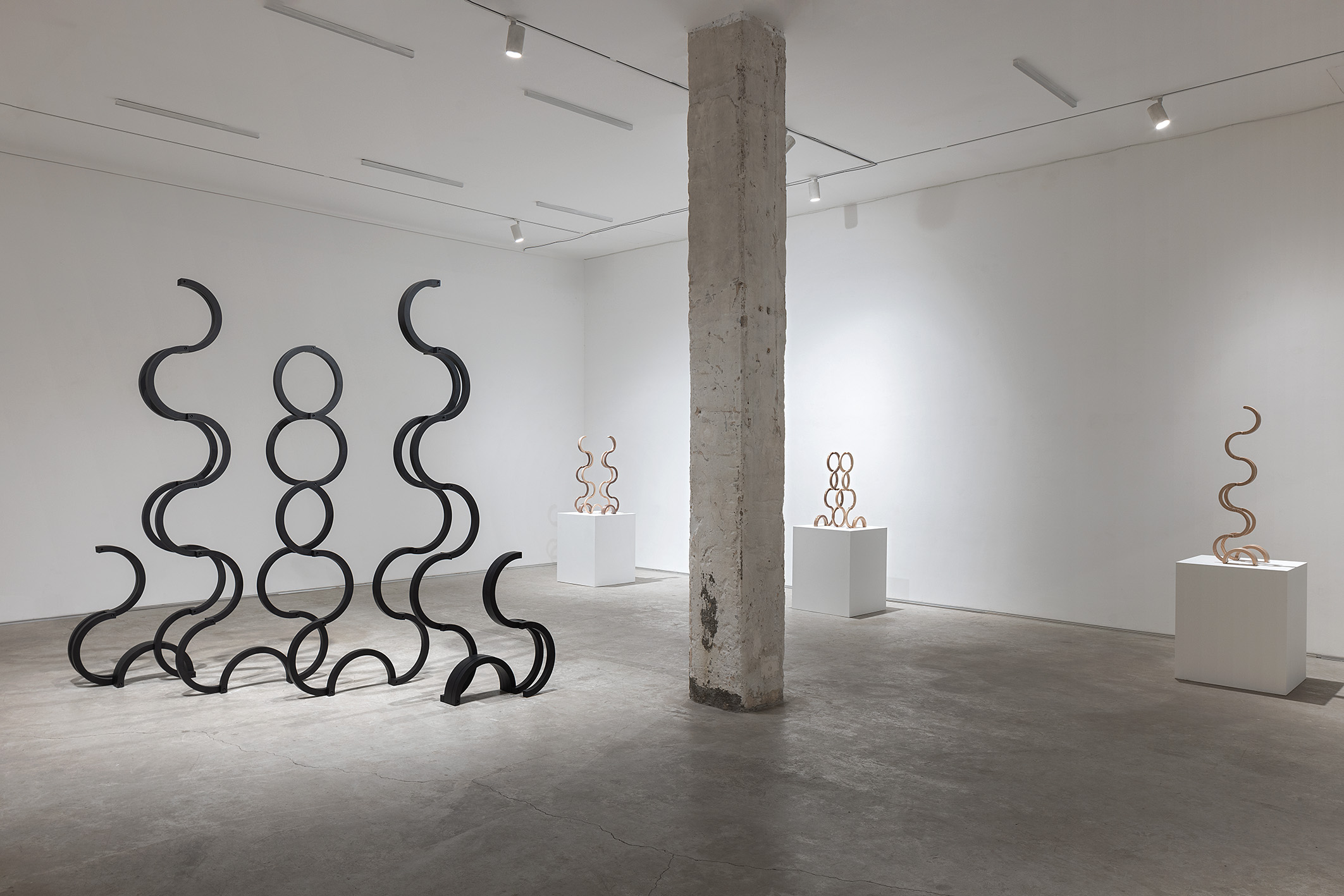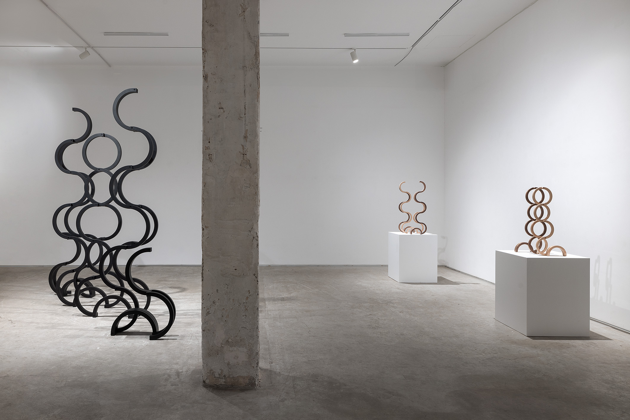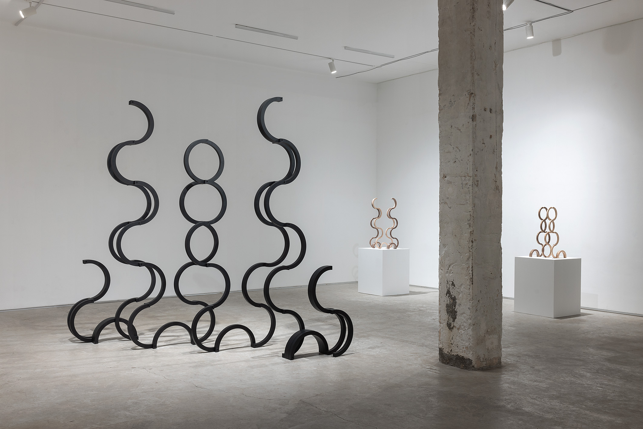 From this point grows Reuven Israel’s new exhibition. It is not a depiction of hell or a religious interpretation, but rather an attempt to transform Buffalmacco’s formal language, the twist, the arch, the coil, into an abstract system of relations between parts, material, and form, between light and shadow. The new series of sculptures he creates, composed of circles and semicircles connected in a precise rhythm, maintains the tension Israel discovered in Buffalmacco: the tension between order and destruction, between wholeness and fragmentation, between reality and imagination.