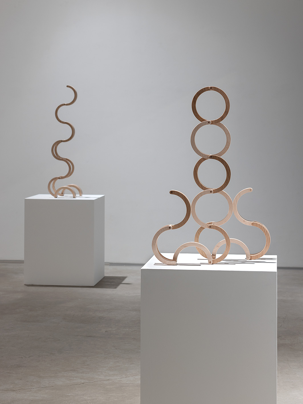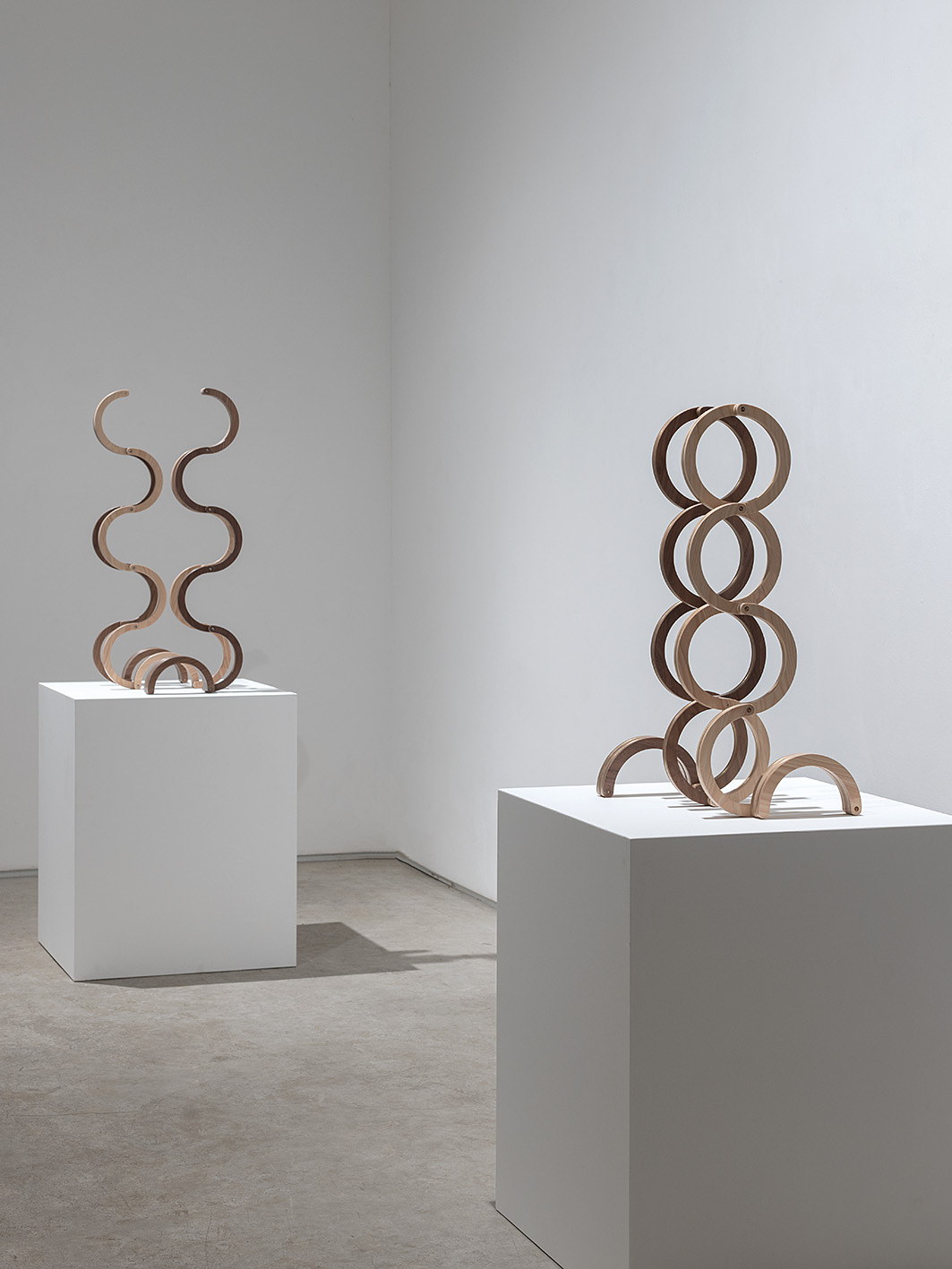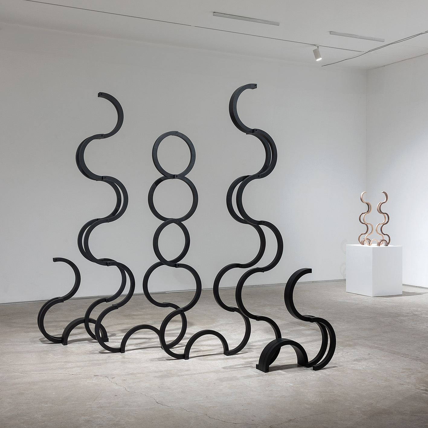 From this point grows Reuven Israel’s new exhibition. It is not a depiction of hell or a religious interpretation, but rather an attempt to transform Buffalmacco’s formal language, the twist, the arch, the coil, into an abstract system of relations between parts, material, and form, between light and shadow. The new series of sculptures he creates, composed of circles and semicircles connected in a precise rhythm, maintains the tension Israel discovered in Buffalmacco: the tension between order and destruction, between wholeness and fragmentation, between reality and imagination.