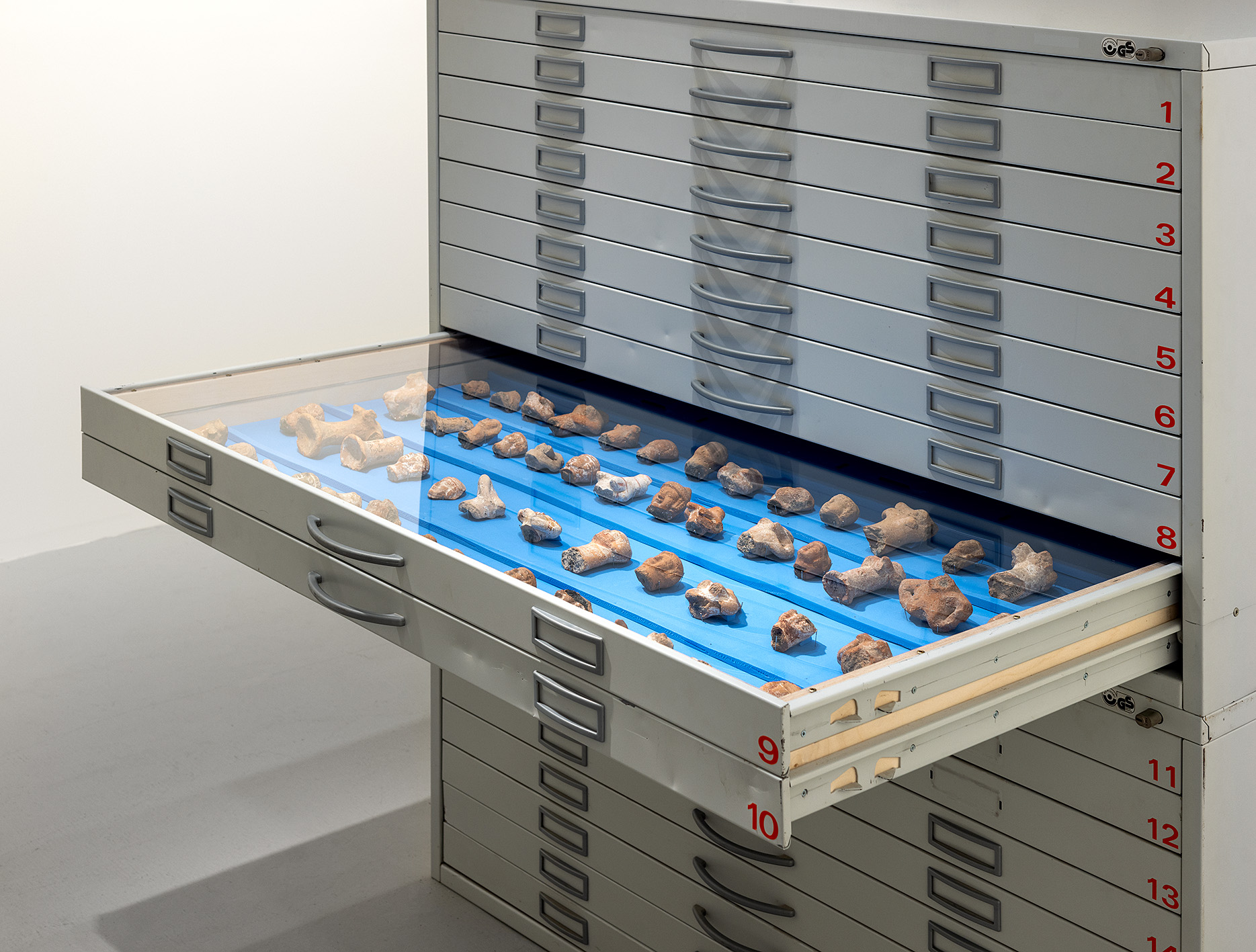 The exhibition ends with a work created in the aftermath of October 7, as Patir’s personal story becomes part of a collective narrative of a shattered present. In the video Keening she resurrects the ancient figurines—some whole and others broken—into a procession of mourning, rage, and protest on the streets of Tel Aviv. Then as now, they embody the burdens of the female body, channeling the anxieties and hopes of women across time.
